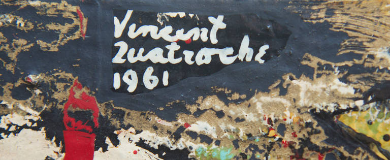 Vincent Quatroche Sr. pictured above circa 1949 was a vibrant, productive artist working in a number of mediums and styles. From abstract, cubist, pop-art (both in oils and tempera), pen and ink, and watercolors Quatroche employed a highly individualist style that evolved continually during his lifetime. His early influences were variations on the themes of Pollack and Picasso. As his creative production which numbered in hundreds of canvases, sketches and notebooks spanned over half a century Vincent consistently challenged himself to grow and express his talents with a variety of subject matter. His great love of the history of trains from steam to diesel figured prominently. Still life, landscapes of the sea and nature and portraits were also constant themes rendered in pen and ink and watercolors. In his latter years he returned to the impressionist treatment of another of his lifelong loves Jazz and the great musicians who were giants in this art form. He continued to work up to within weeks of his demise at the age of 89 on Easter Sunday 2011.