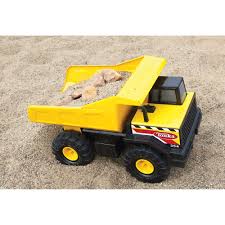 With his yellow Tonka truck